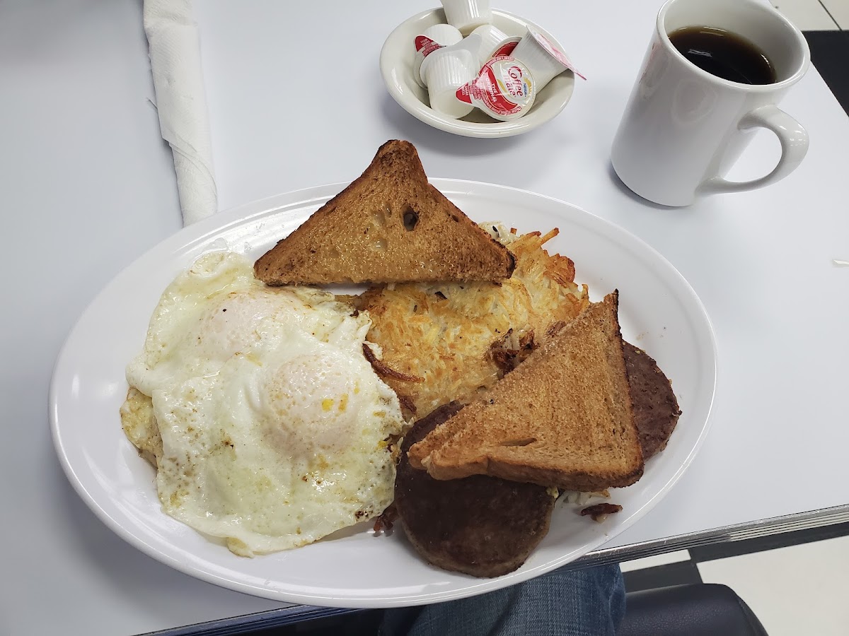 Nice little place for usual American food. Waitress was nice and the place was very clean. Their sausage Patties were very good! Will go back when in the area.